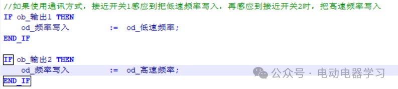 如果采用通訊方式寫入頻率,程序在上的基礎(chǔ)上增加如下: